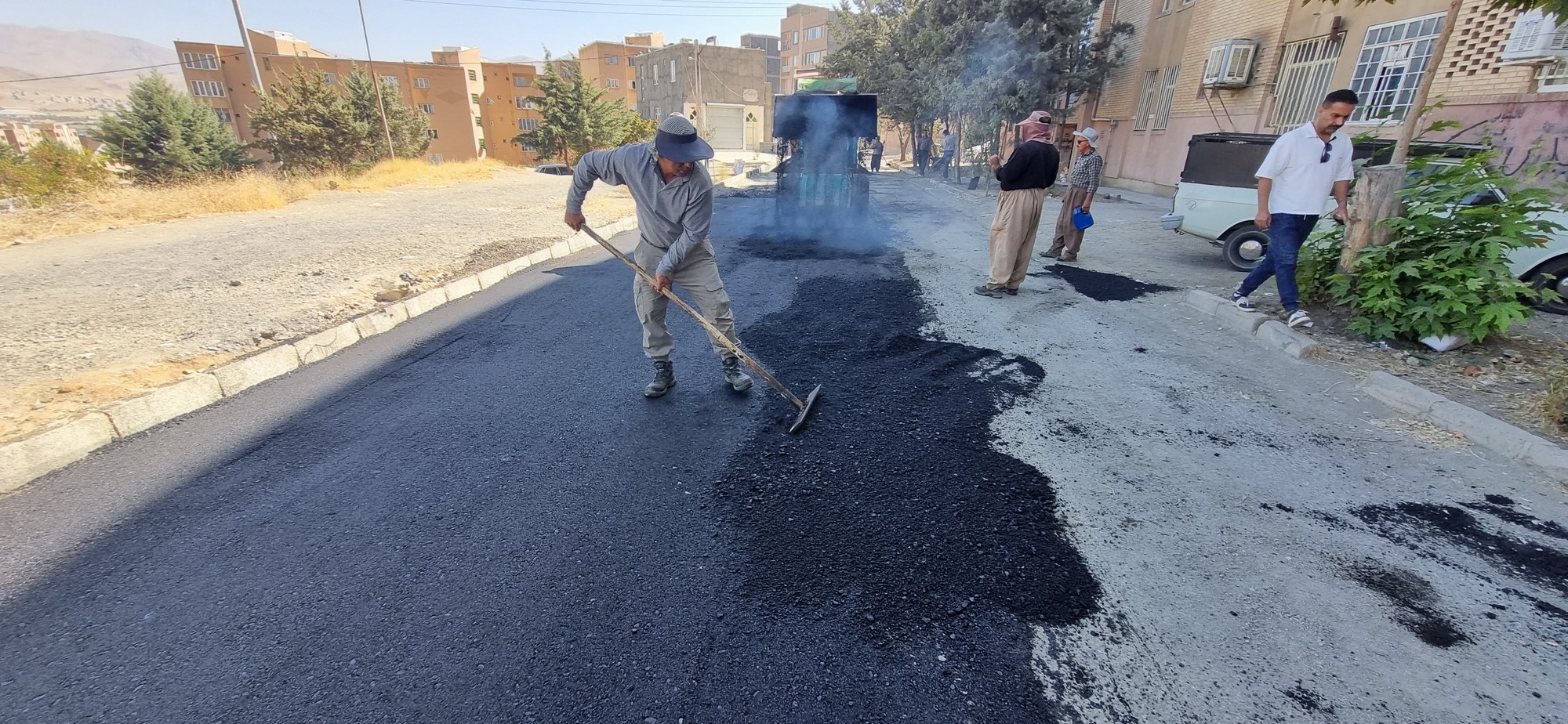 عملیات آسفالت محوطه آپارتمان های پاوان در راستای بهسازی معابر.