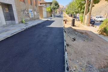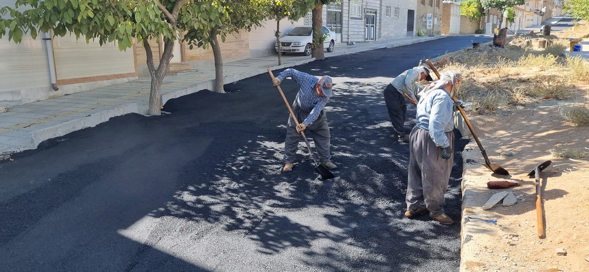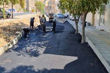 عملیات آسفالت حریم پیاده رو بلوار تعاون کوی گوران در راستای تسهیل در تردد عابرین پیاده و رضایتمندی شهروندان:.